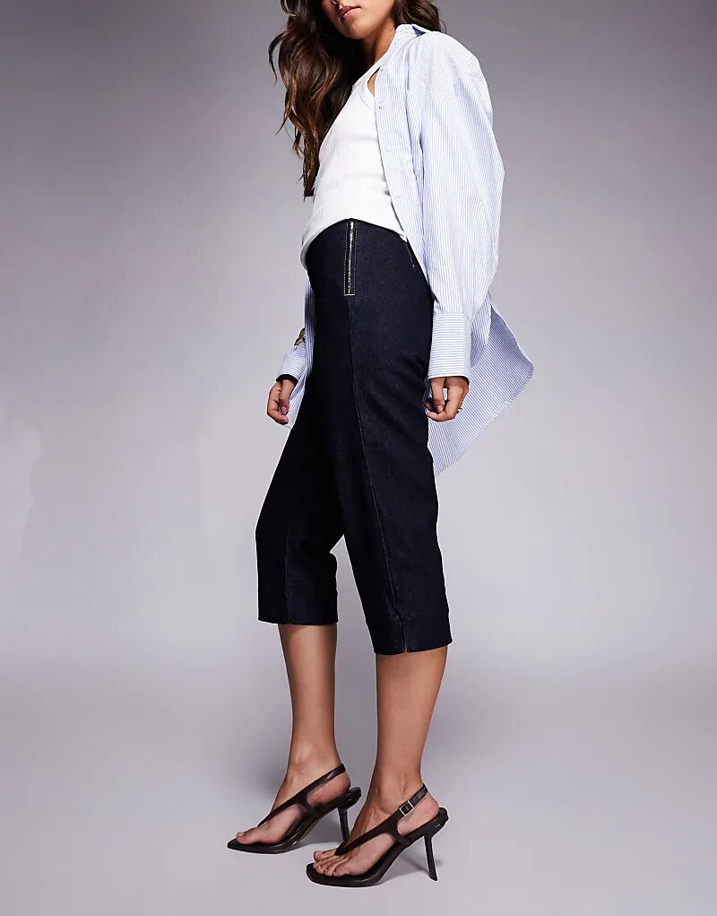 Джинсовые эластичные брюки-капри ASOS DESIGN чистого черного цвета 2 995₽