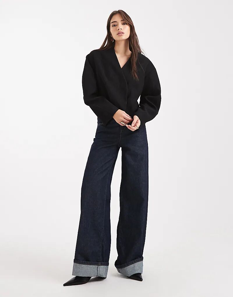 Укороченный фактурный блейзер ASOS DESIGN черного цвета