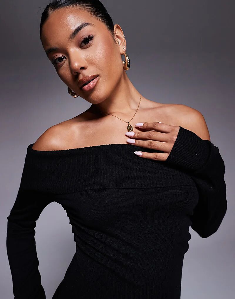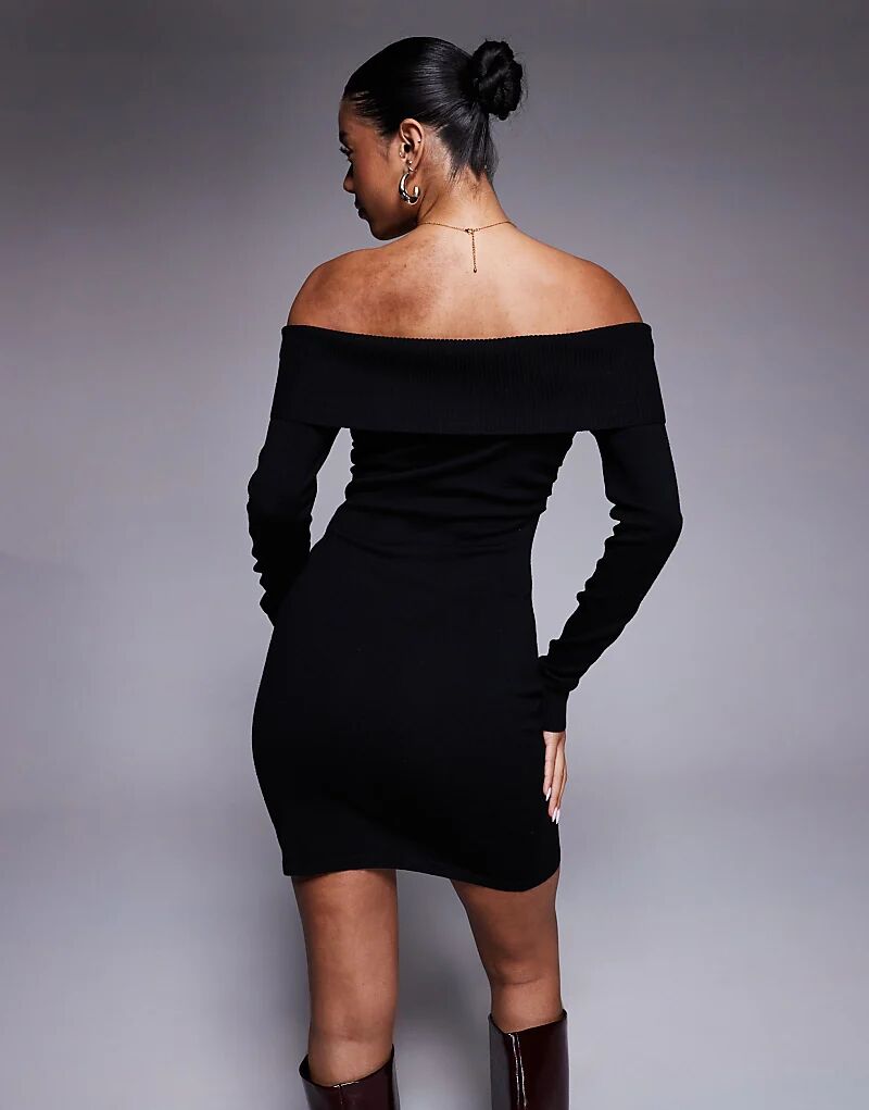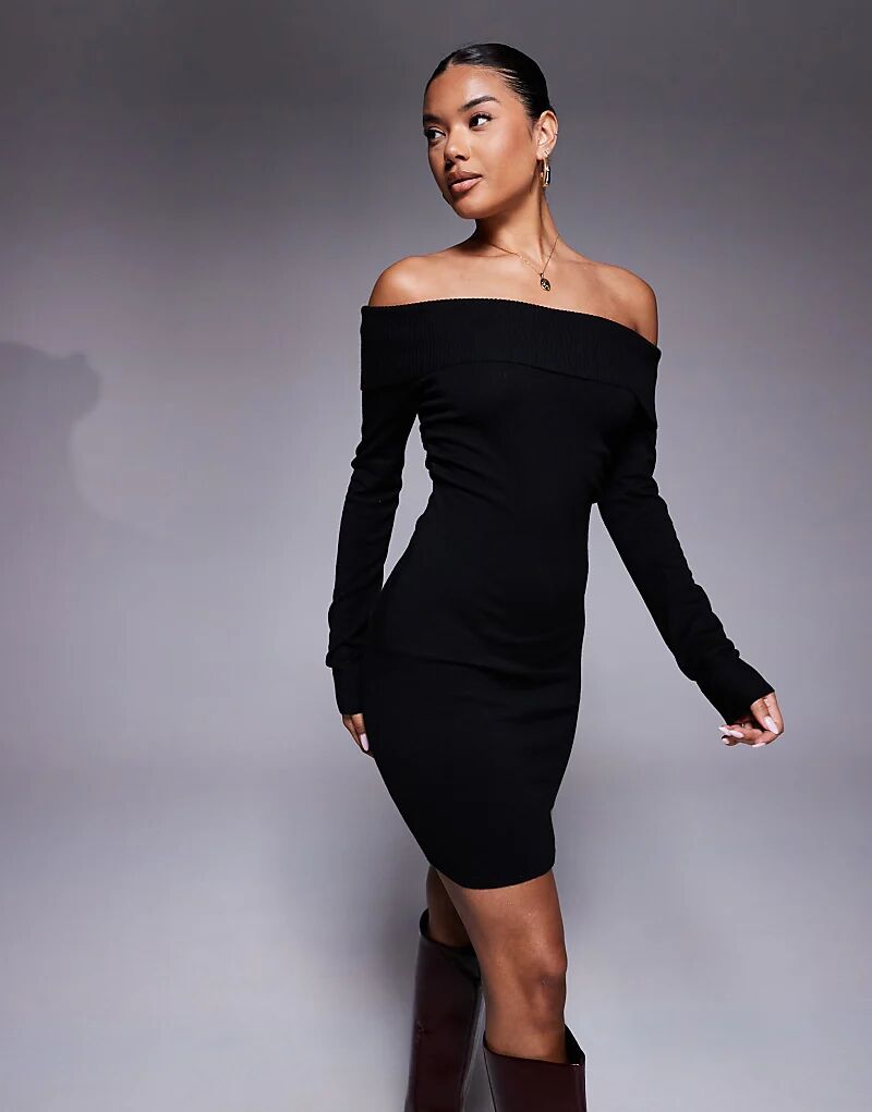 Мини-платье Kaiia с ребристым лифом и разрезами по бокам, черное