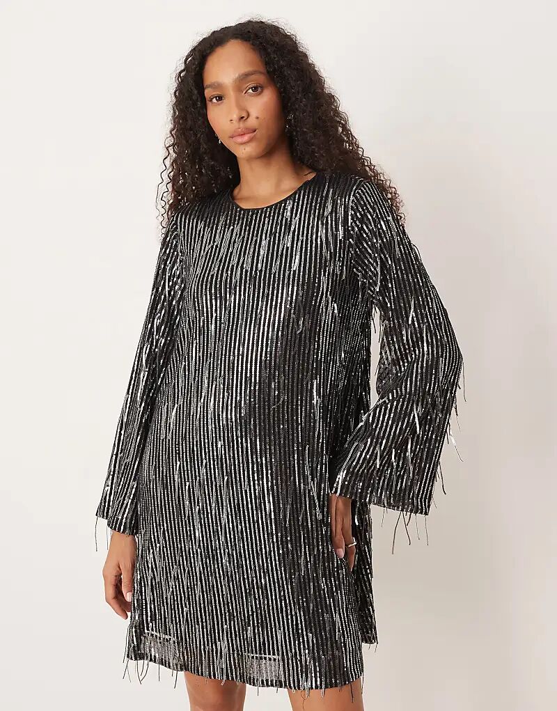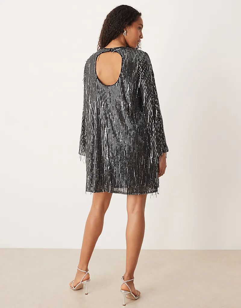 Мини-платье YAS с бахромой и пайетками черного цвета