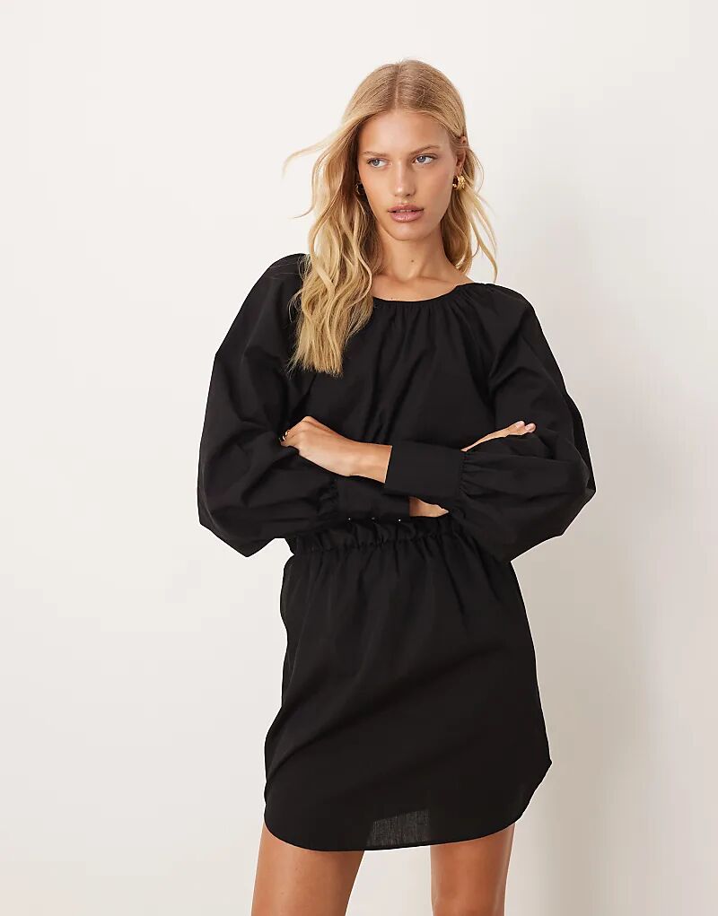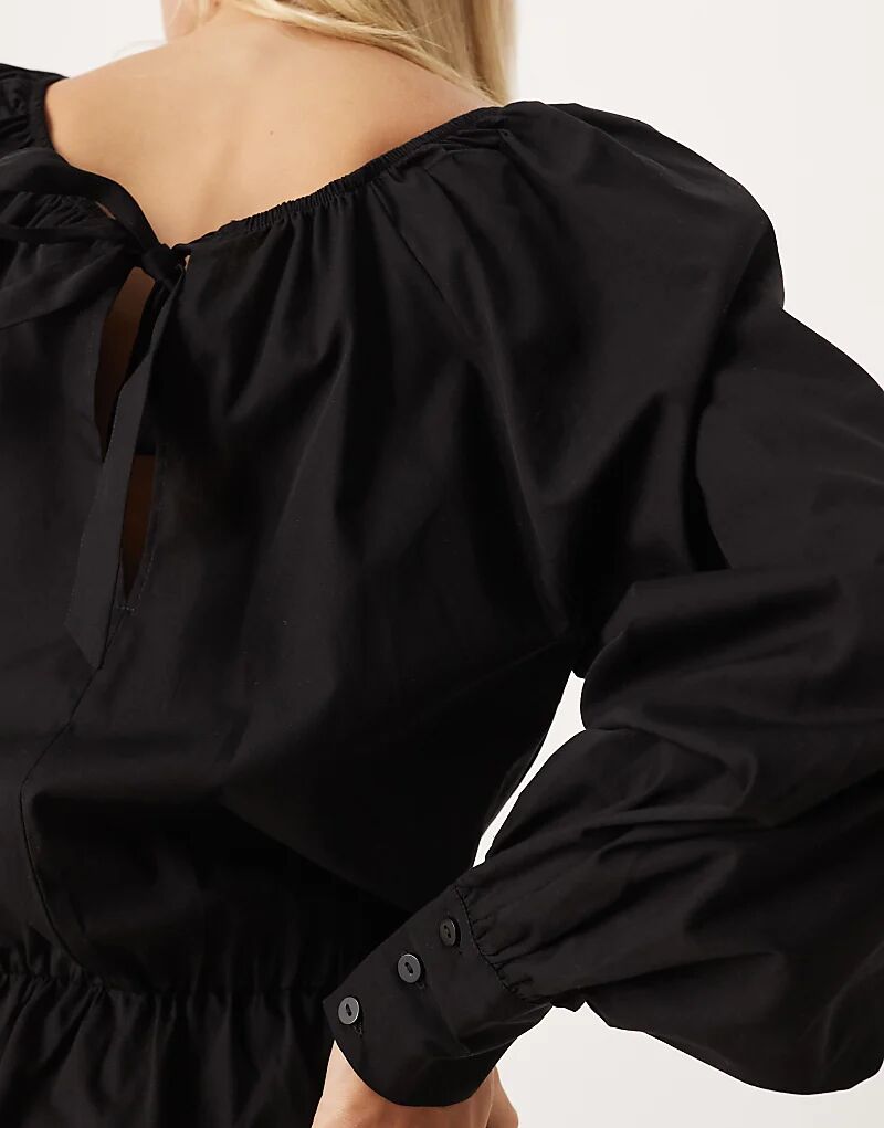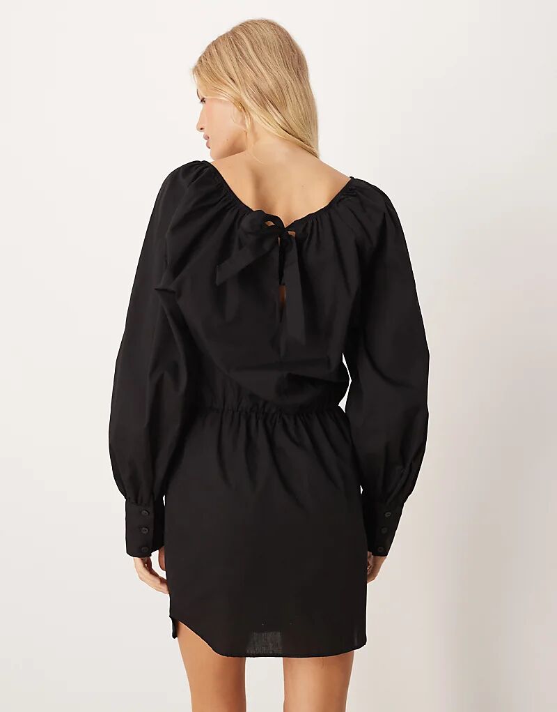 Платье-блузон мини из плотного поплина ASOS DESIGN с завязками сзади, черное