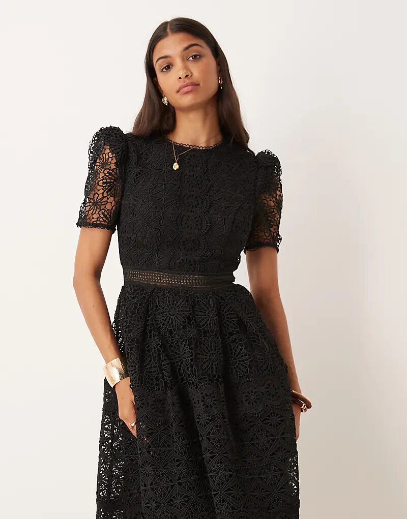 Платье миди True Decadence с рукавами-фонариками черного цвета