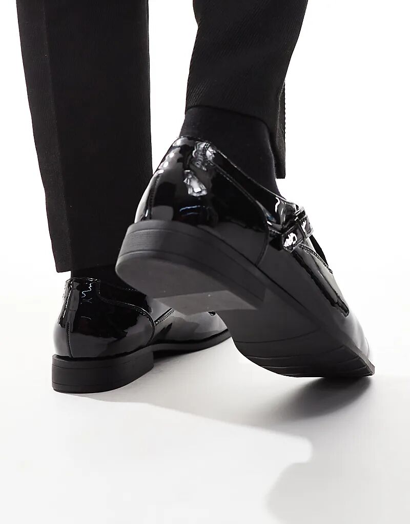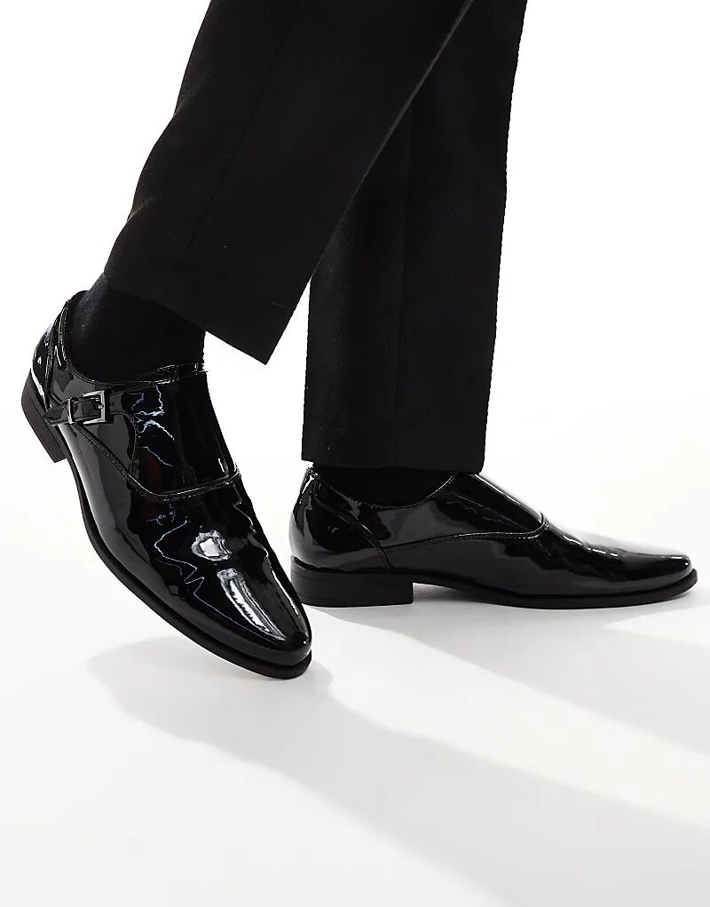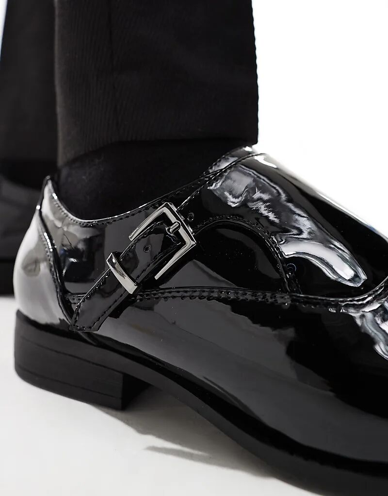 Туфли-монки ASOS DESIGN с одним ремешком, черные, лакированные