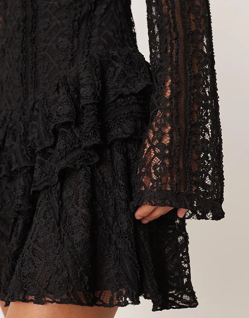 Мини-платье Free People Tabby с кружевом черного цвета
