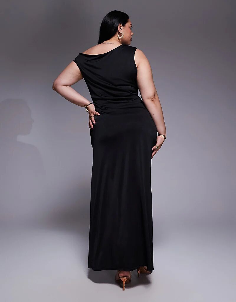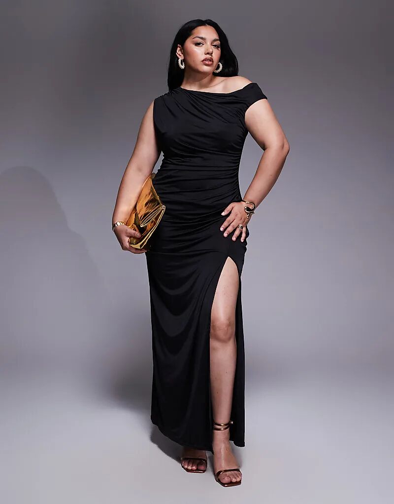 Асимметричное платье миди TFNC Plus с разрезом на бедрах черного цвета