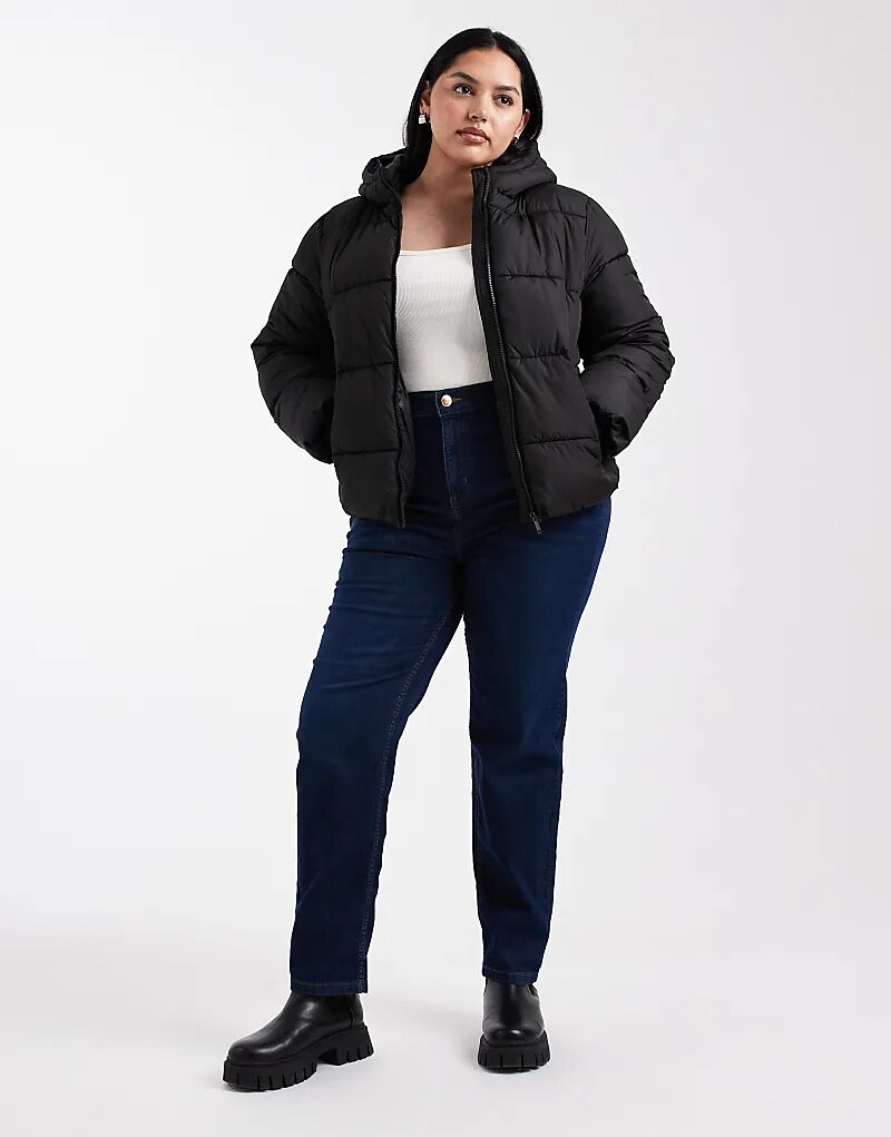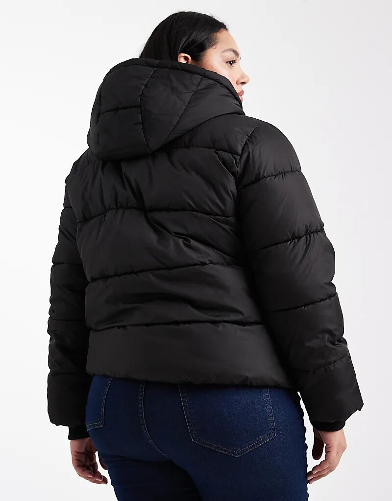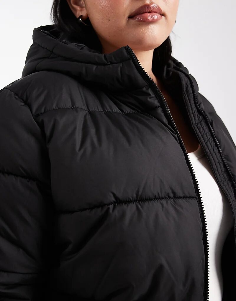 Утепленное пальто Pieces Curve с капюшоном черного цвета