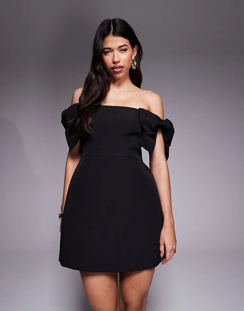Мини-платье с открытыми плечами и бантом Forever New черного цвета