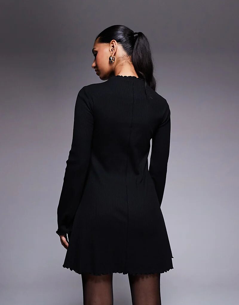 Мини-платье ASOS DESIGN с длинными рукавами и салатовым подолом, черное