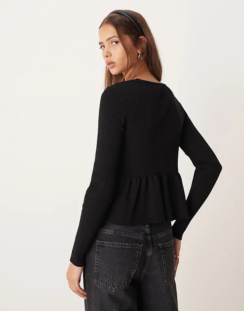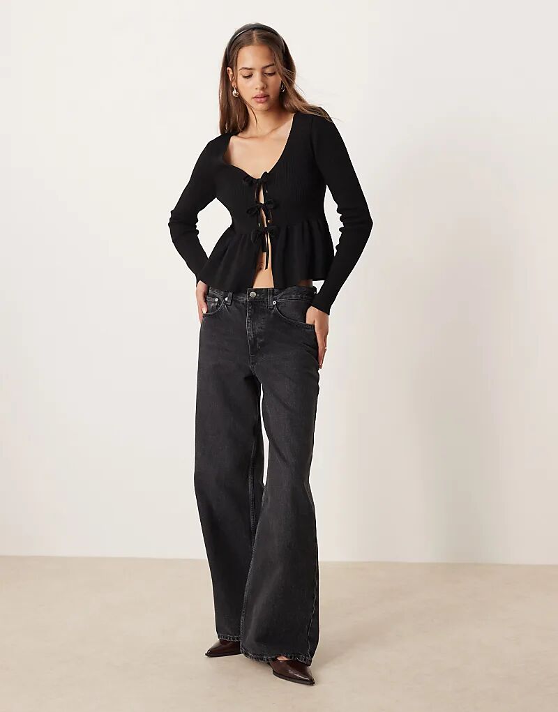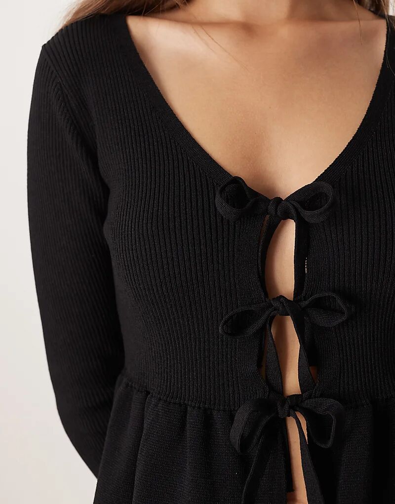 Кардиган Mango с завязкой спереди и баской, черный 7 596₽