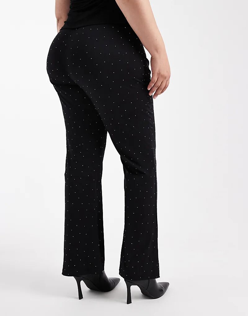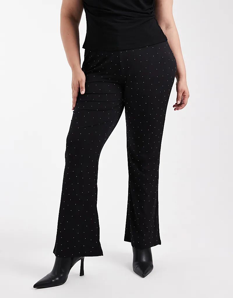 Расклешенные брюки со стразами ONLY Curve черного цвета