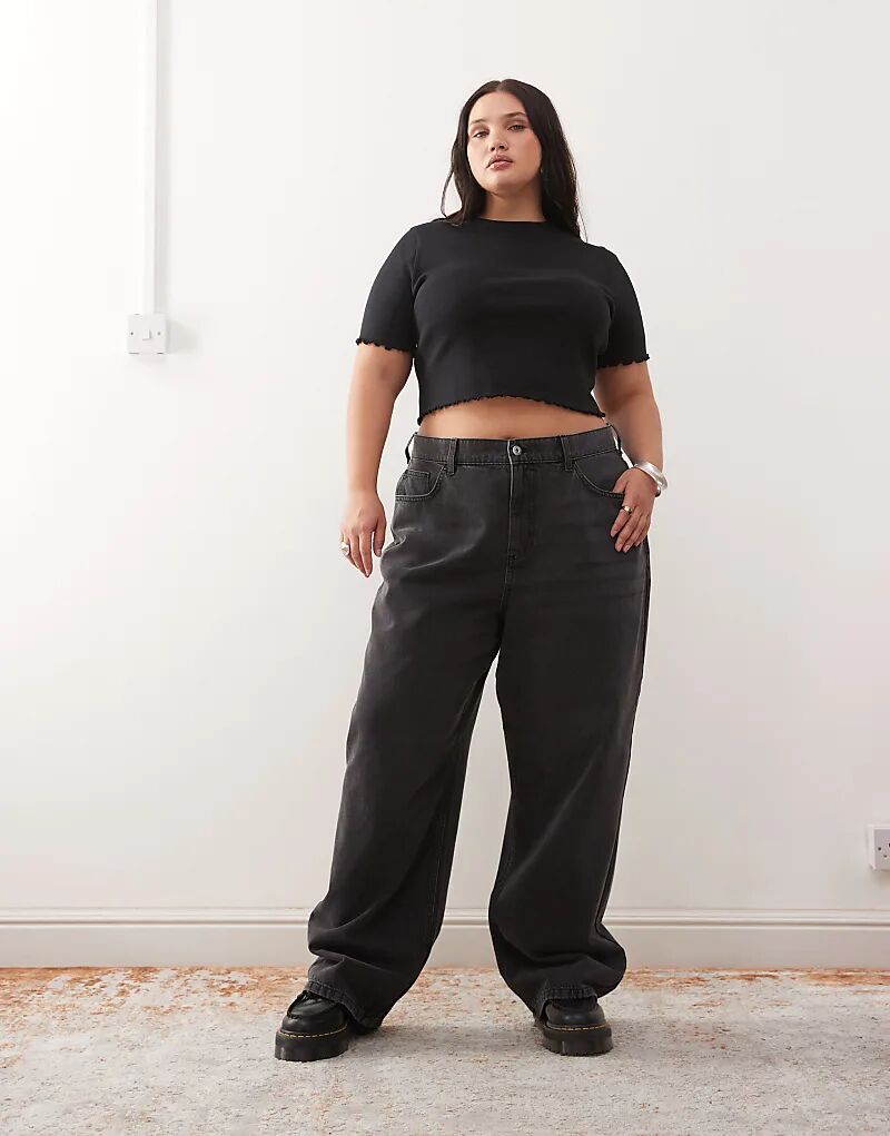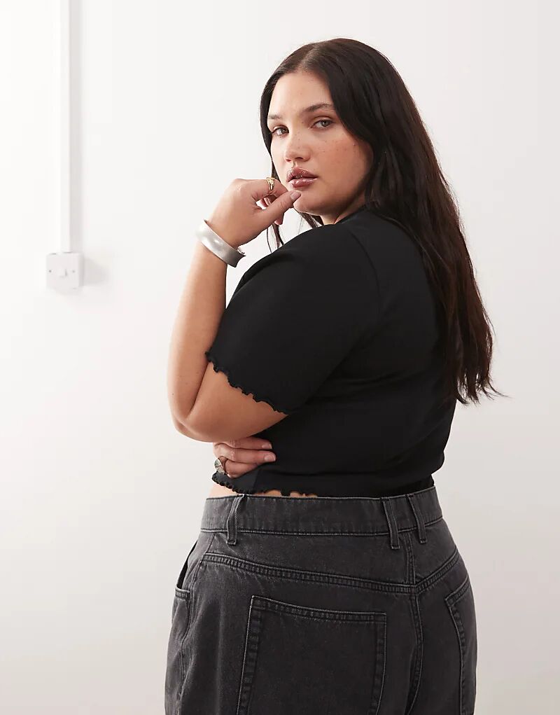Футболка COLLUSION Plus с салатовым краем в рубчик, черная 2 344₽