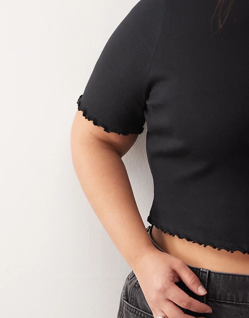 Футболка COLLUSION Plus с салатовым краем в рубчик, черная