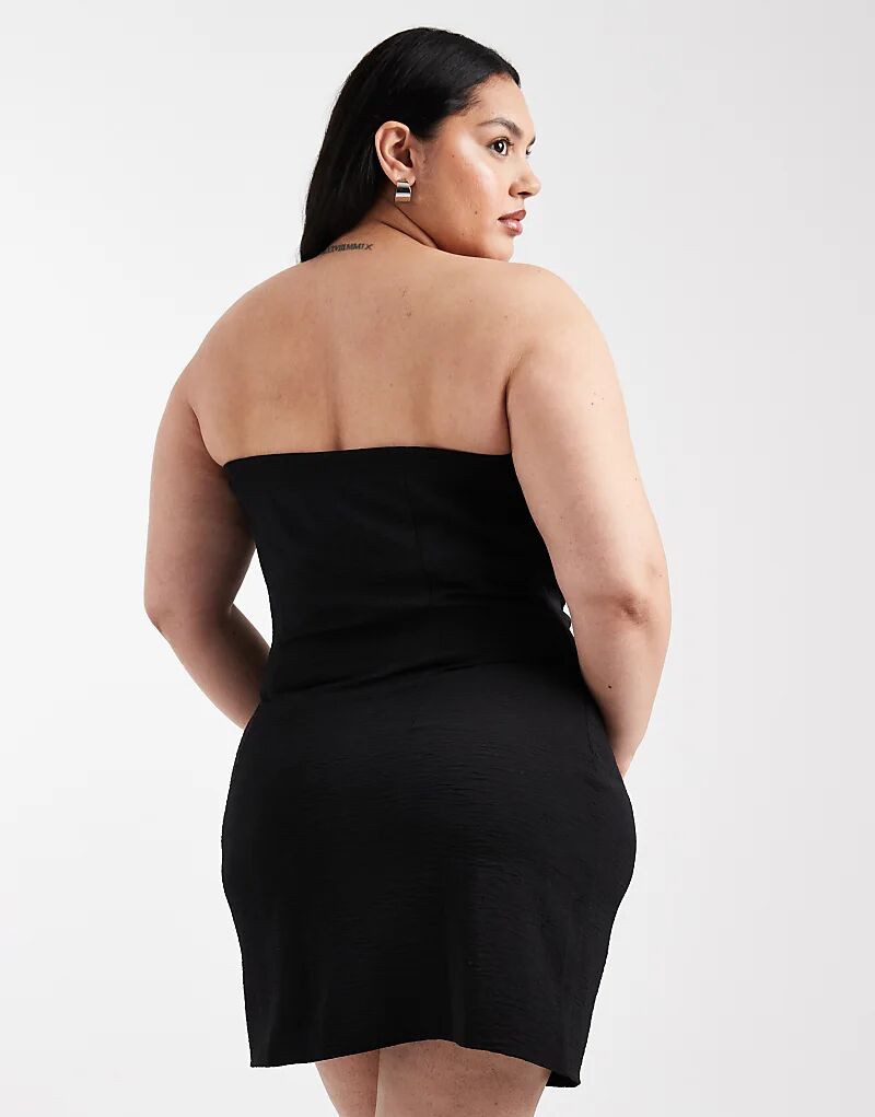 Мини-платье-бандо ONLY Curve со сборками черного цвета