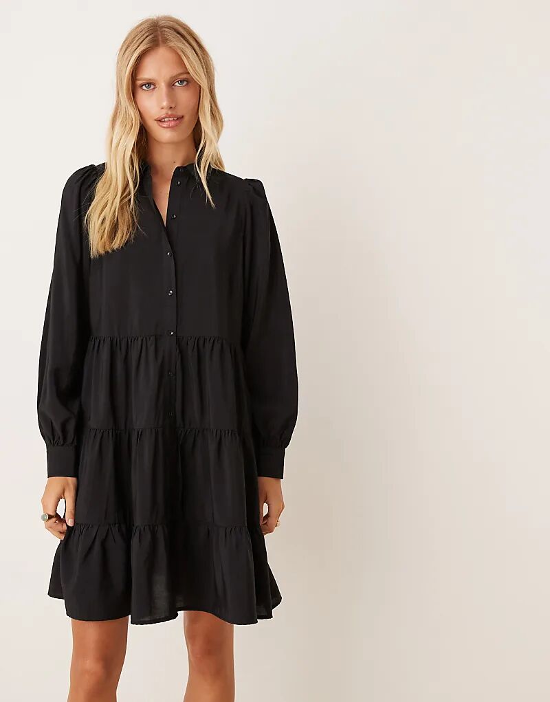 Платье-рубашка мини с длинными рукавами YAS черного цвета