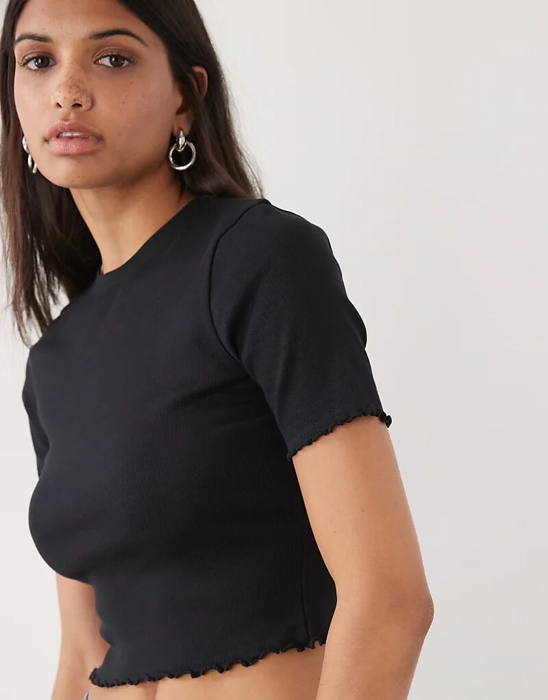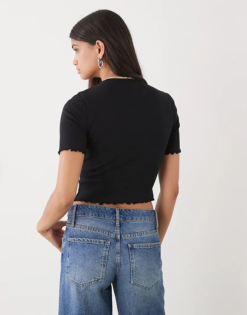 Футболка COLLUSION с салатовым краем в рубчик, черная