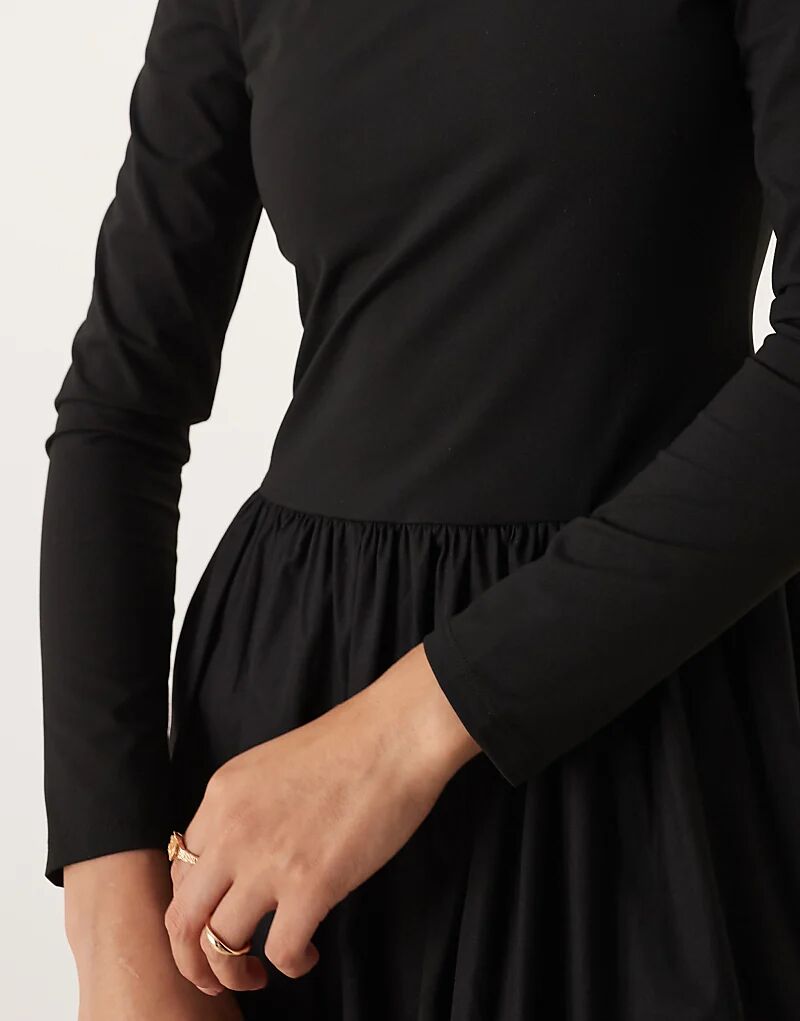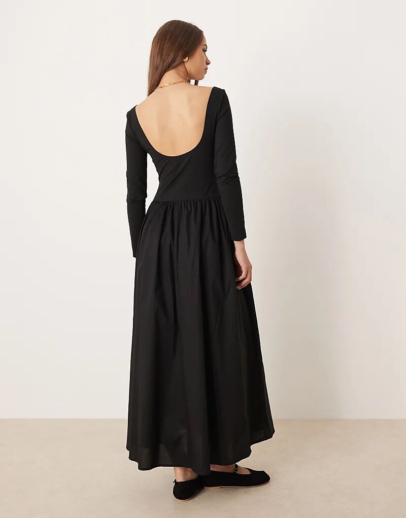 Платье-миди с длинными рукавами ASOS DESIGN черного цвета