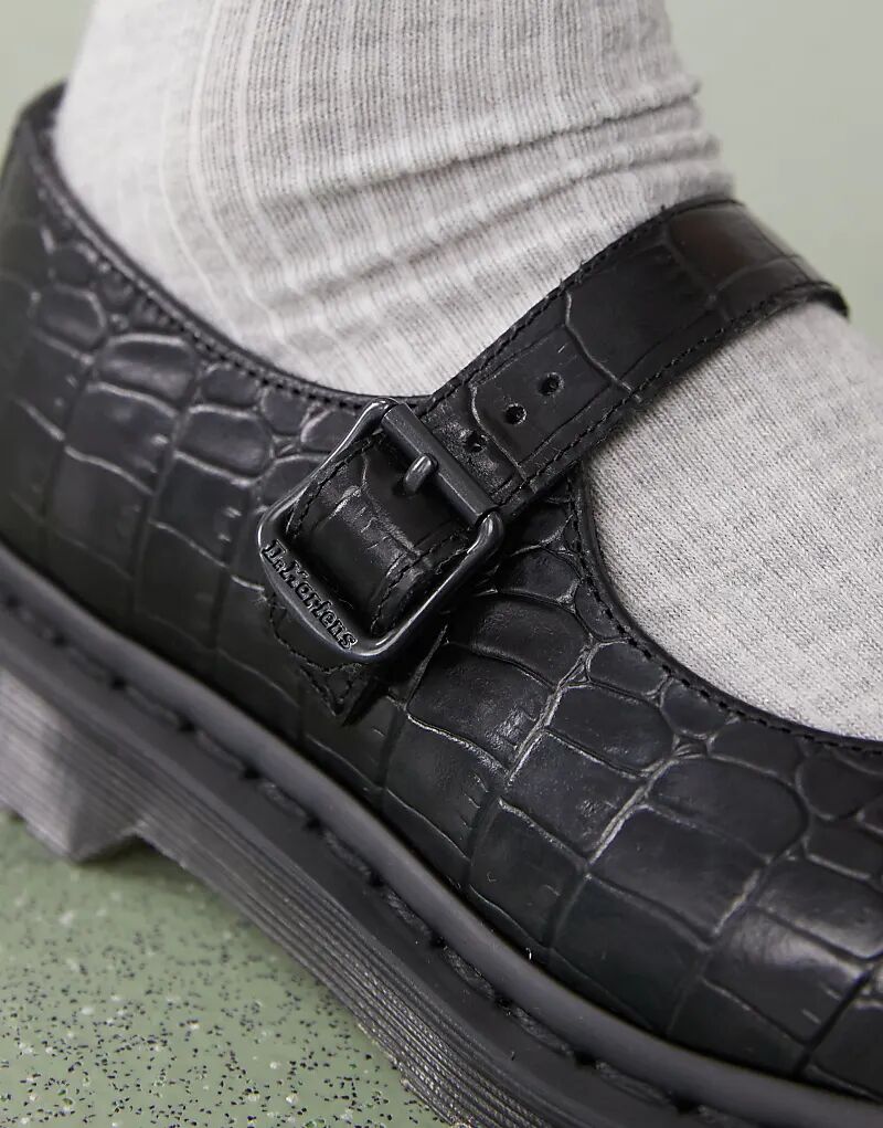 Туфли Dr Martens Croco Elphie Mary Jane в черном цвете