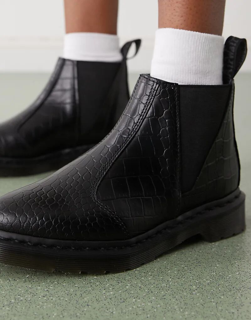 Ботинки Chelsea Dr Martens II Bianca Croco черного цвета