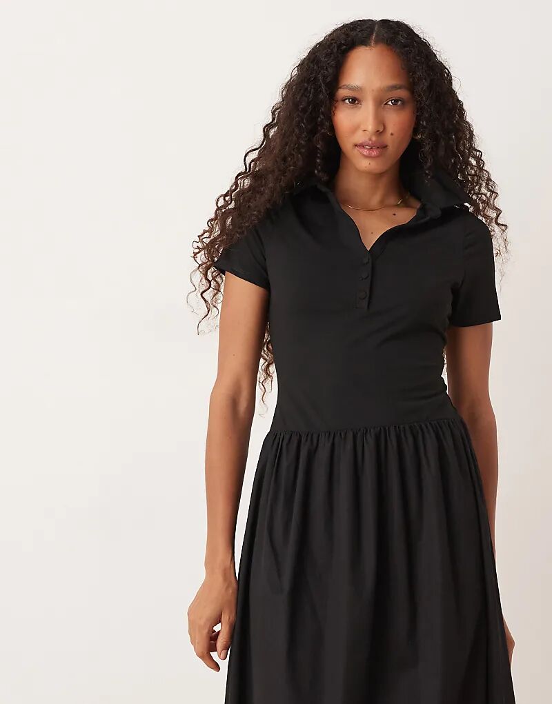 Платье макси в стиле регби ASOS DESIGN черного цвета