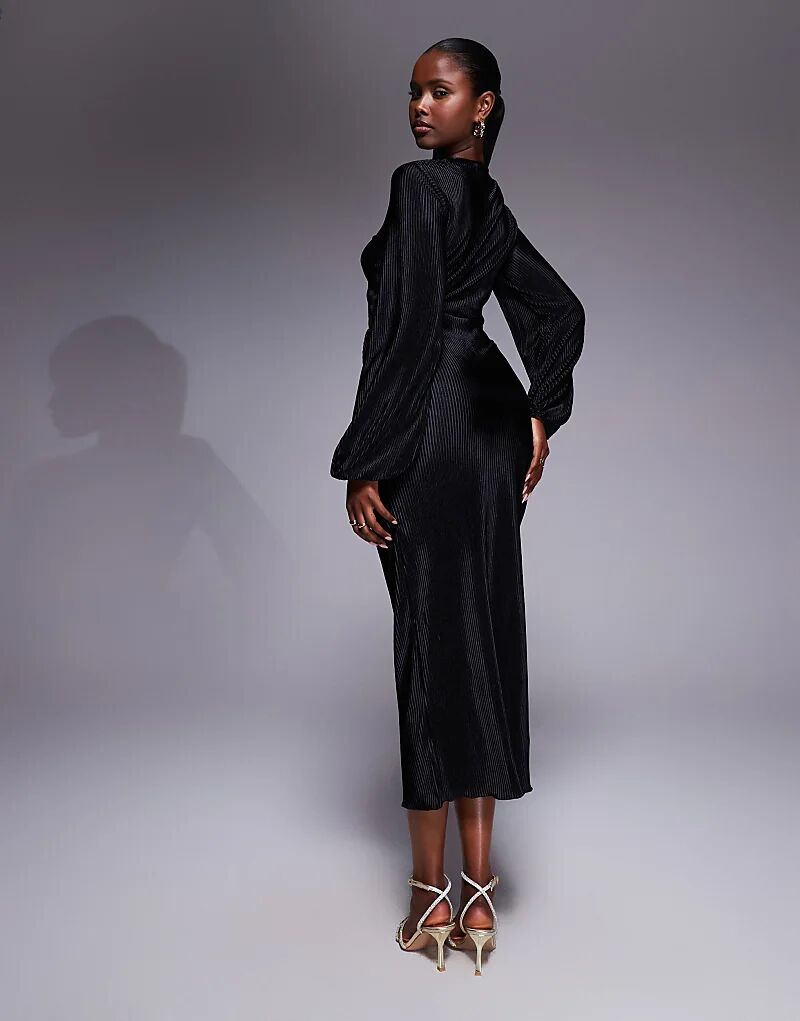 Платье миди ASOS DESIGN с плиссировкой и вырезом спереди, черное 4 645₽