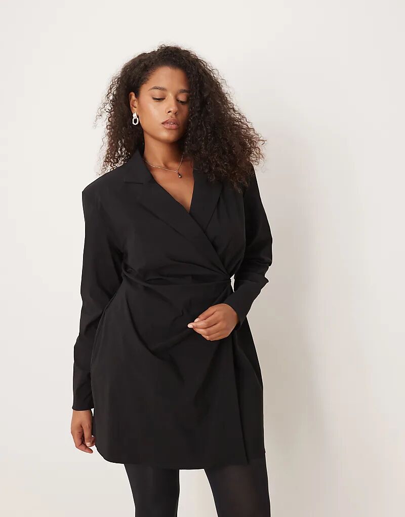 Платье-мини с приталенным жакетом ASOS DESIGN Curve черного цвета