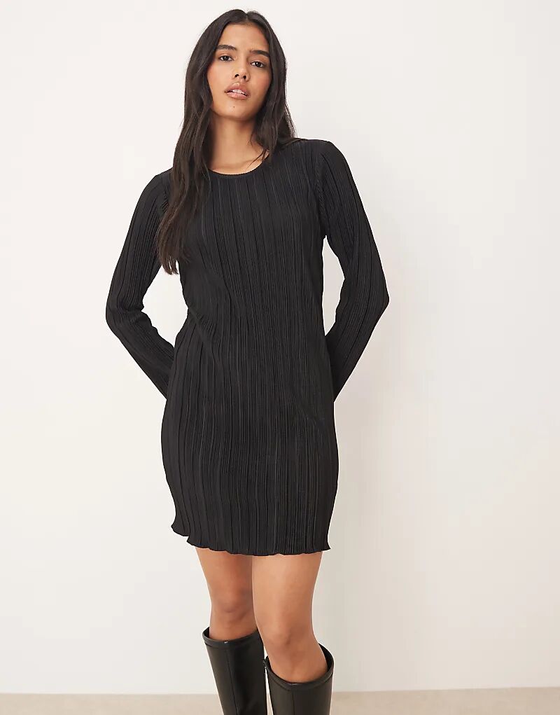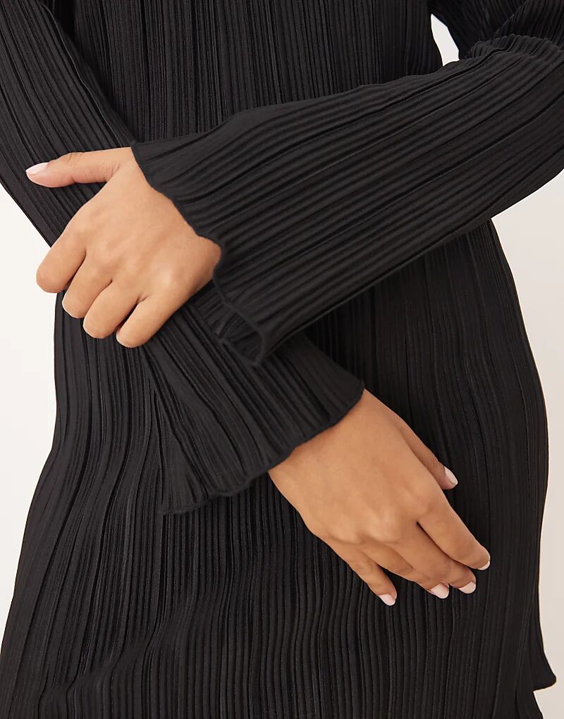 Мини-платье JDY с плиссированными рукавами-фонариками, черное
