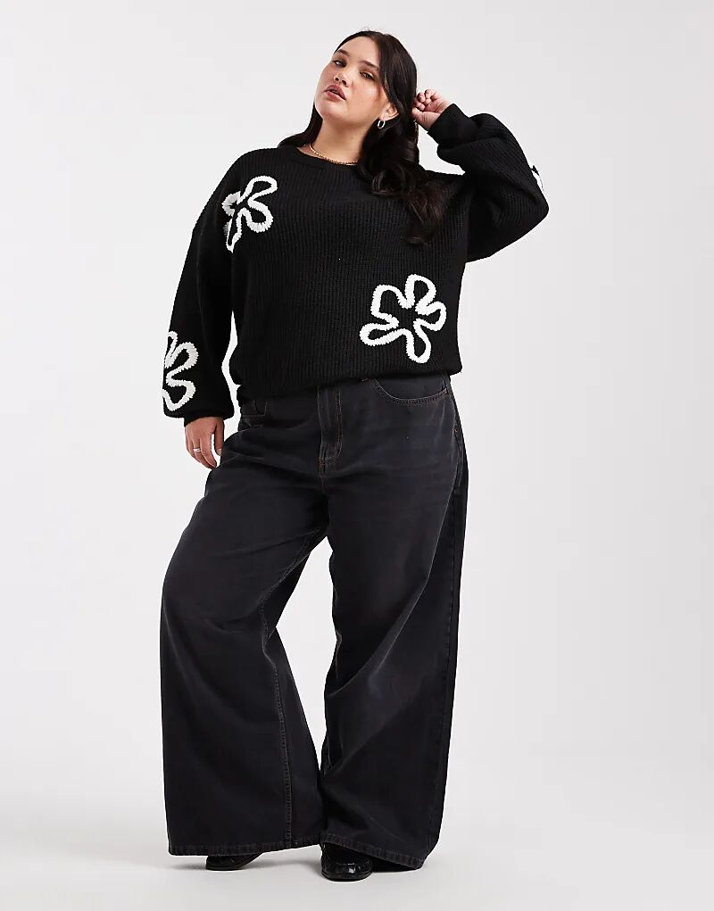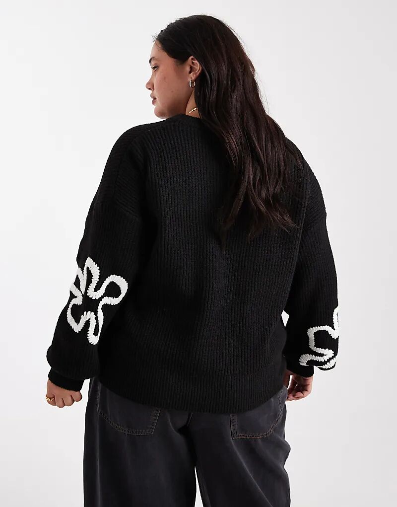 Джемпер ONLY Curve с цветочным узором в черном цвете