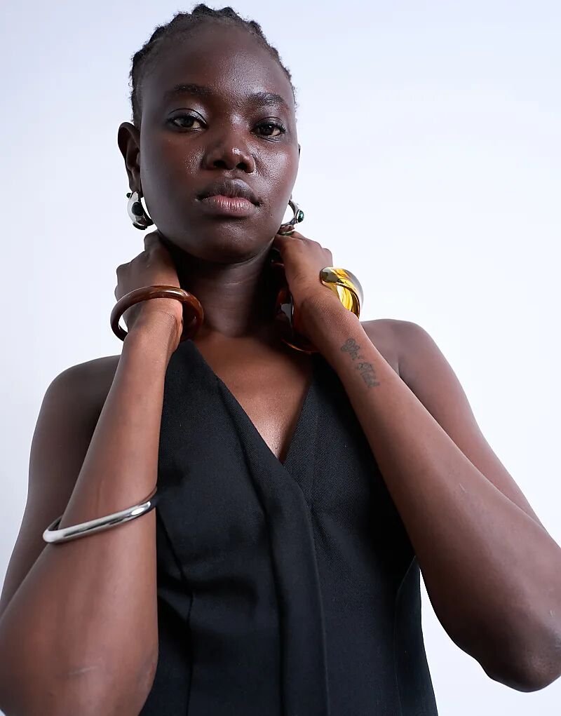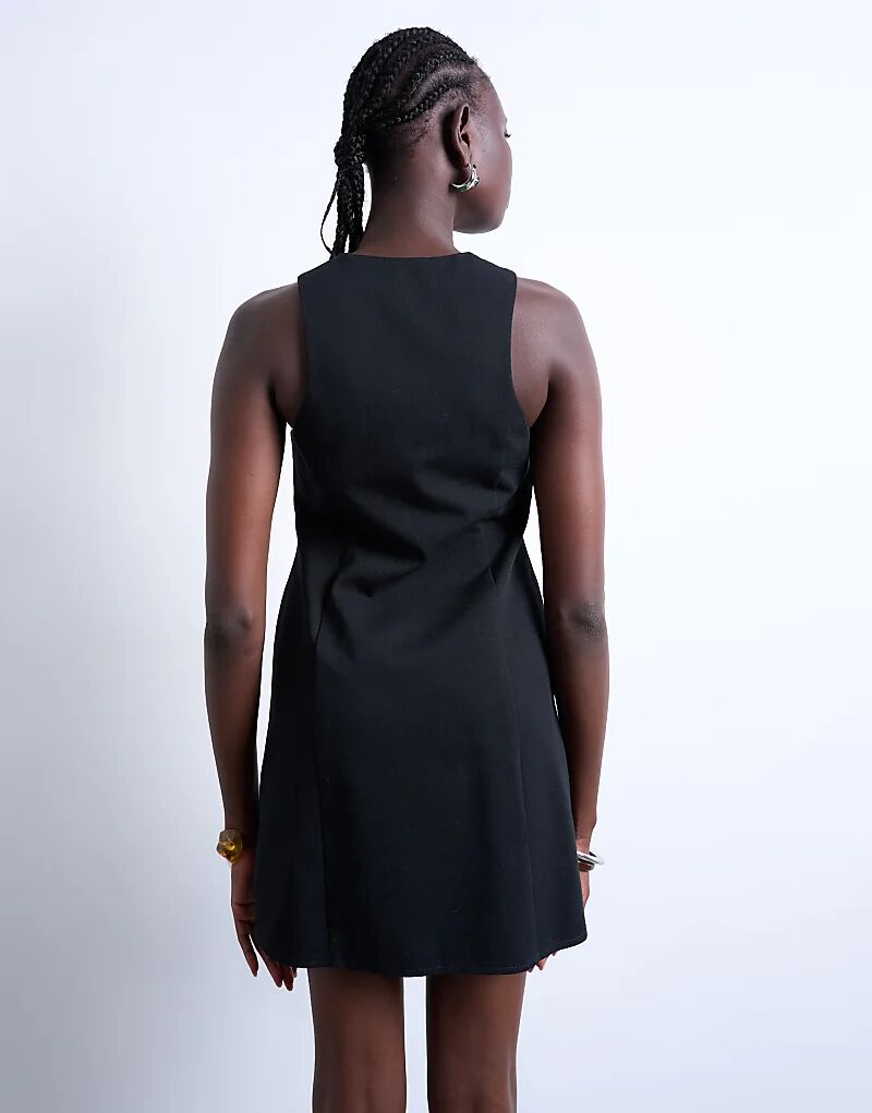 Мини-платье Topshop с V-образным вырезом и чистой планкой, черное