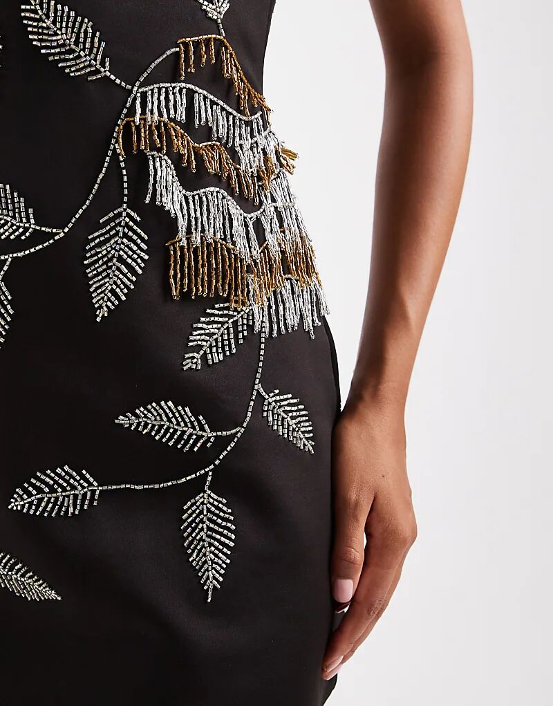 Мини-платье ASOS DESIGN с отделкой бисером в черном и золотом цвете