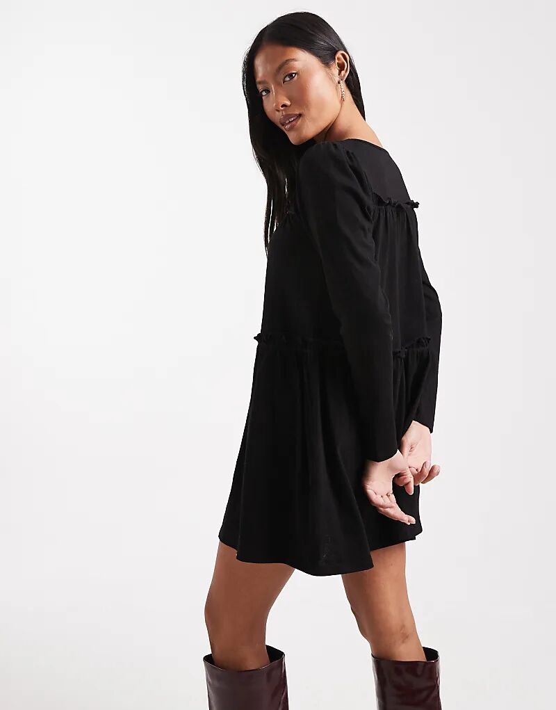 Мини-платье Miss Selfridge Petite с оборками и чёрным покрытием