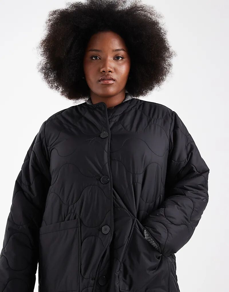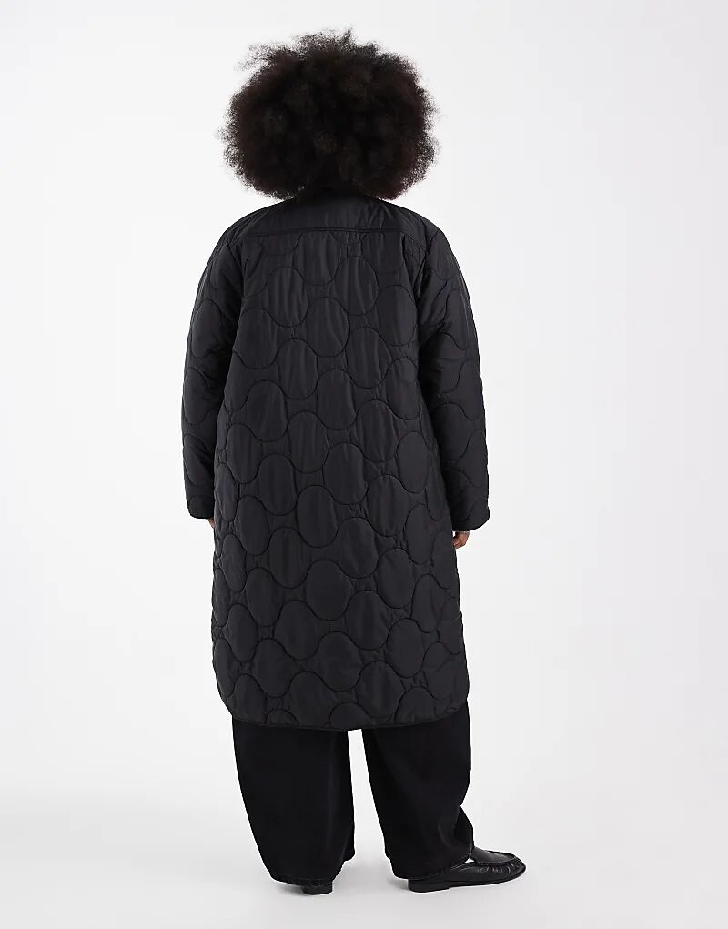 ONLY Curve стеганое длинное пальто черного цвета