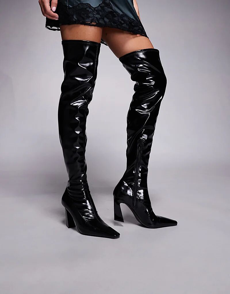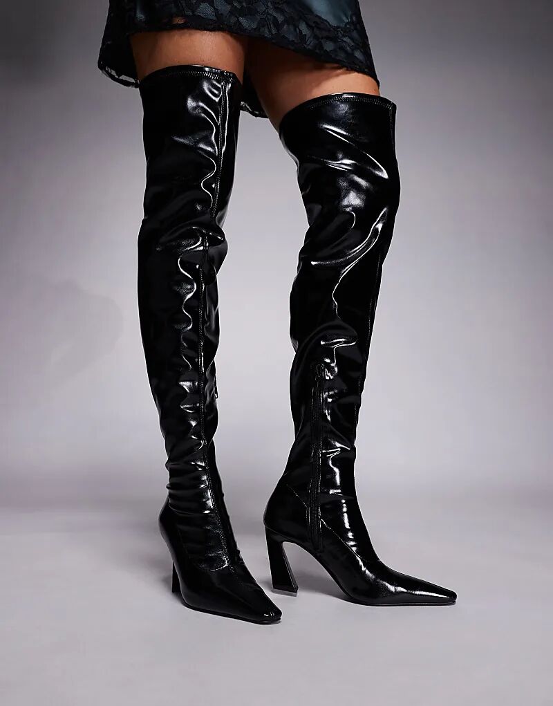 Черные сапоги выше колена ASOS DESIGN Keeper с острым носком