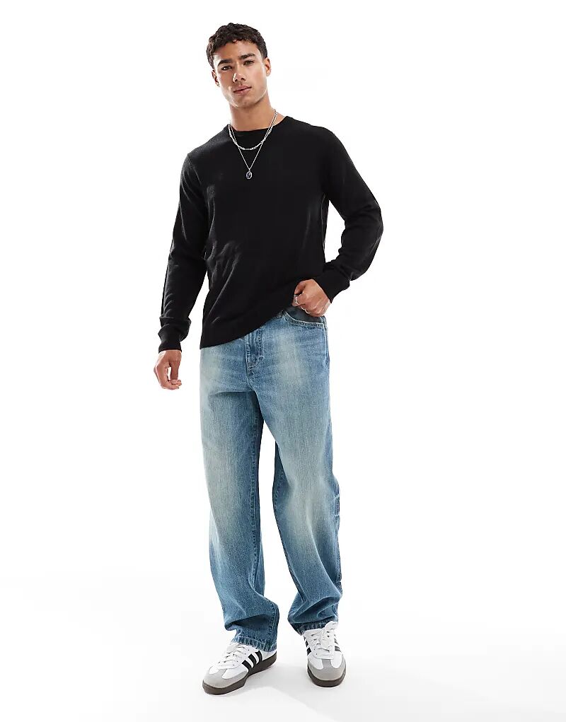 Потертый джемпер с круглым вырезом черного цвета