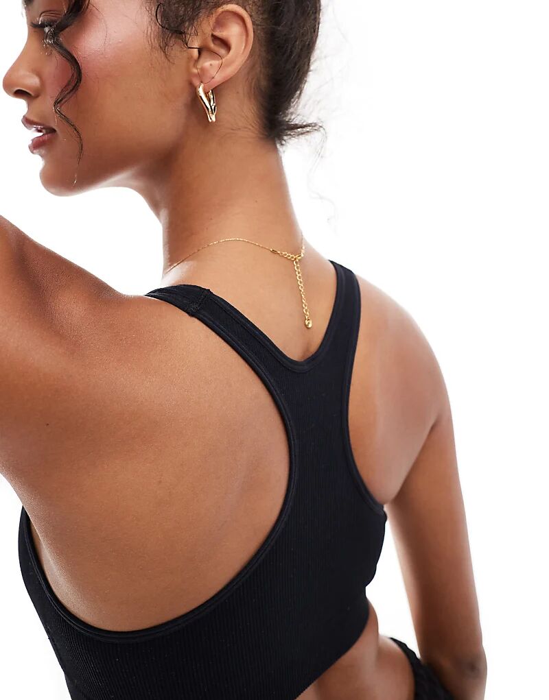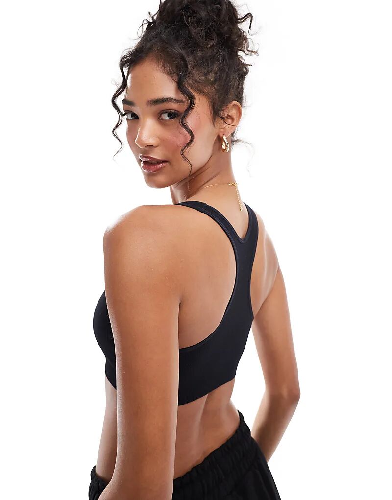 Бюстгальтер-бралетт Lindex с ребристым воротником-борцовкой, черный