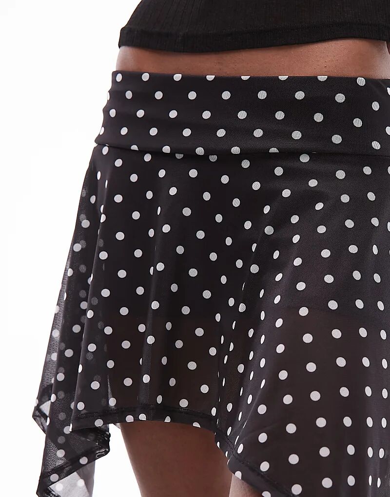 Мини-юбка-шорты ASOS DESIGN с сетчатым подолом в черно-белый горошек