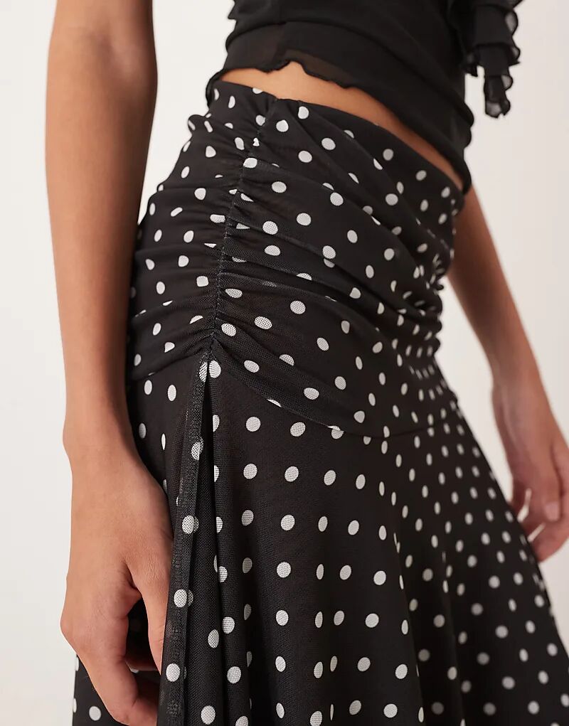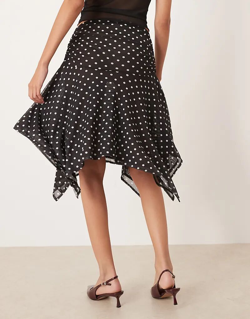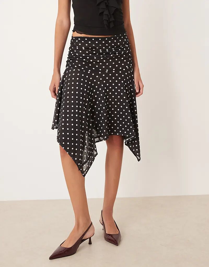Юбка ASOS DESIGN с сетчатым подолом в черно-белый горошек