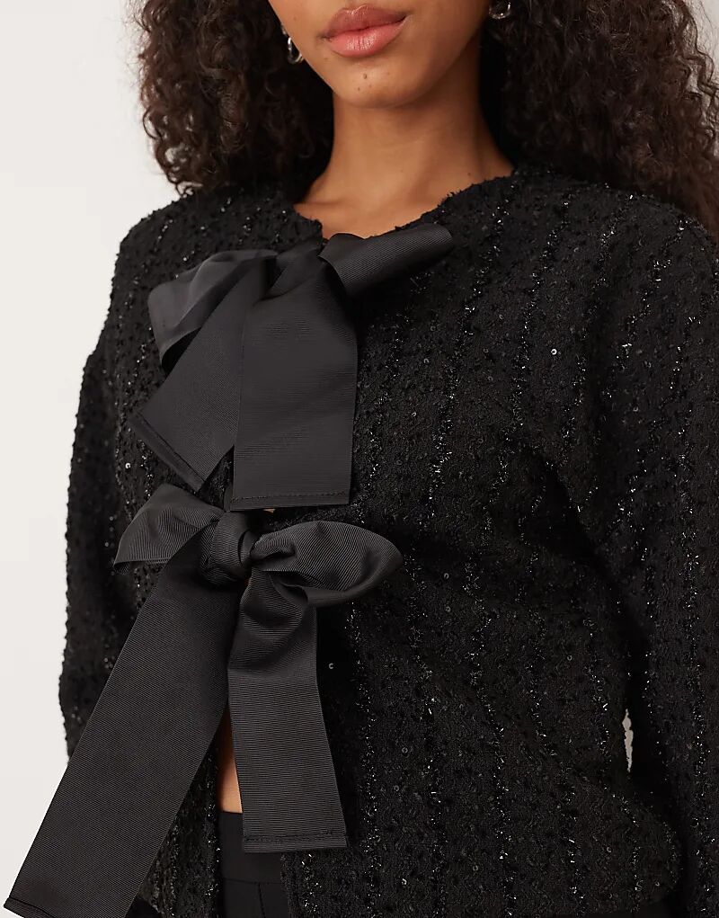 Черный плетеный топ Vila с бантом спереди