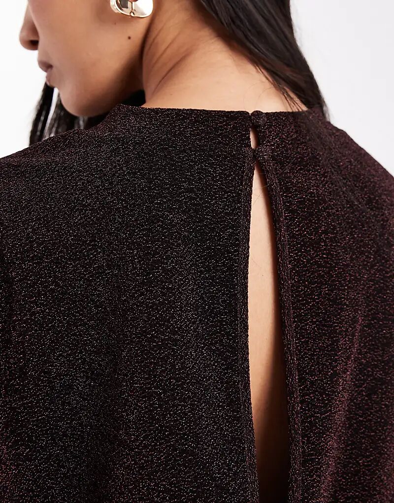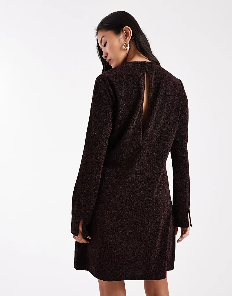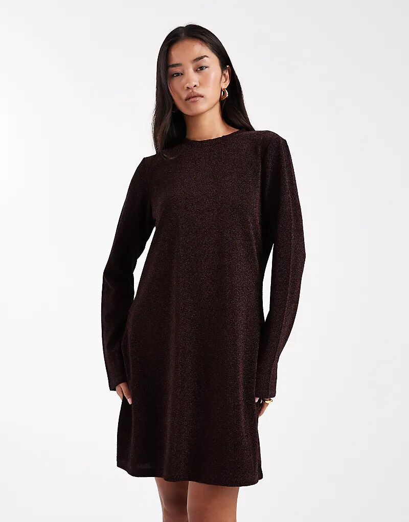 Мини-платье Object с блестками и длинными рукавами в теплом коричневом цвете