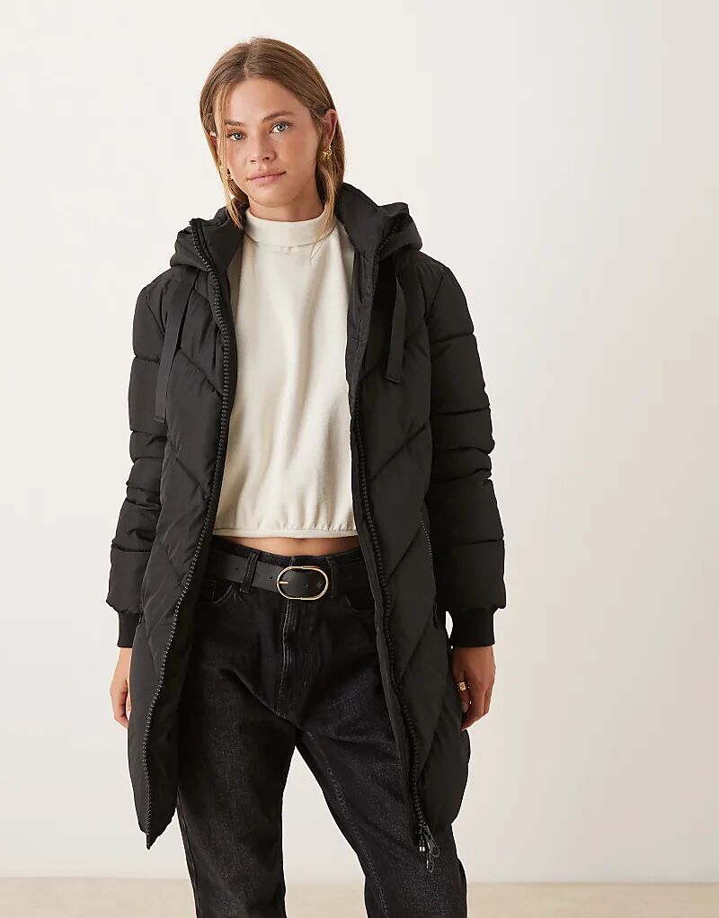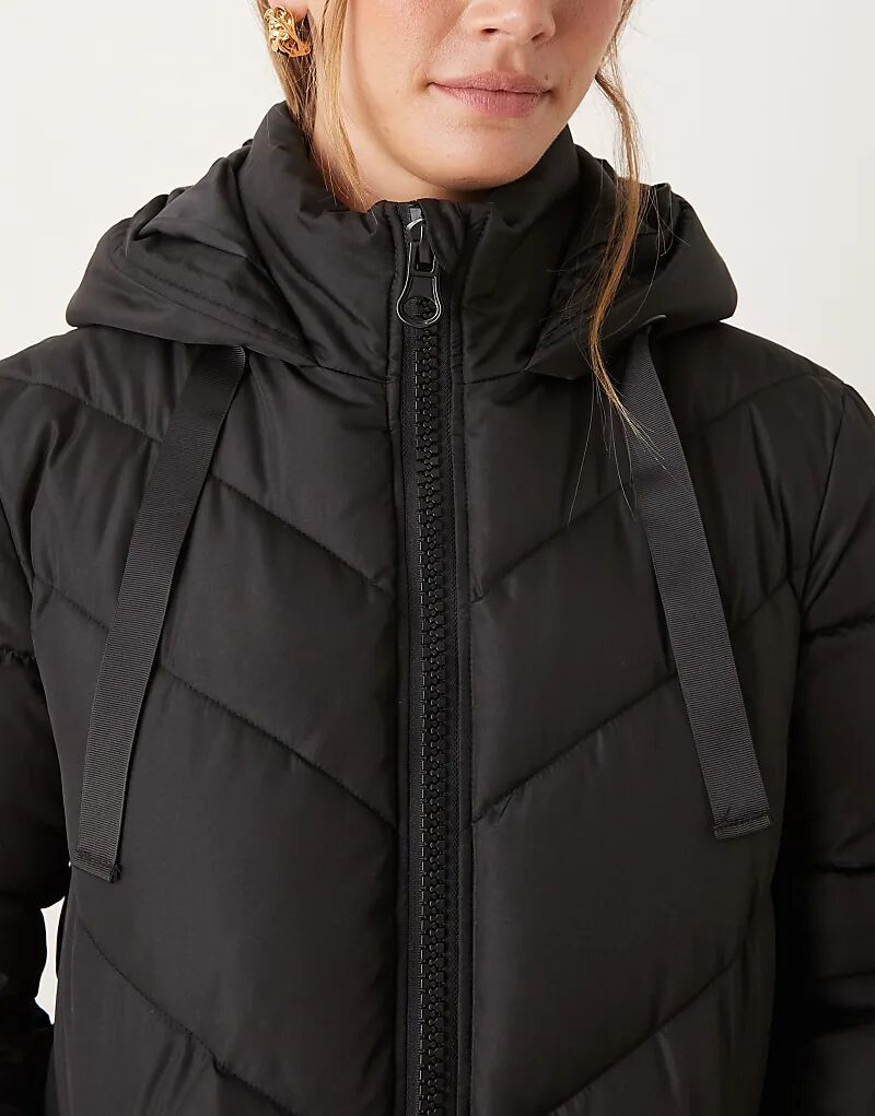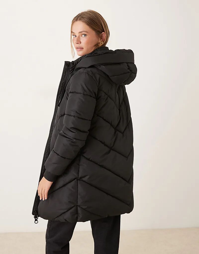 Утепленное пальто JDY с капюшоном и шевронным узором, черное