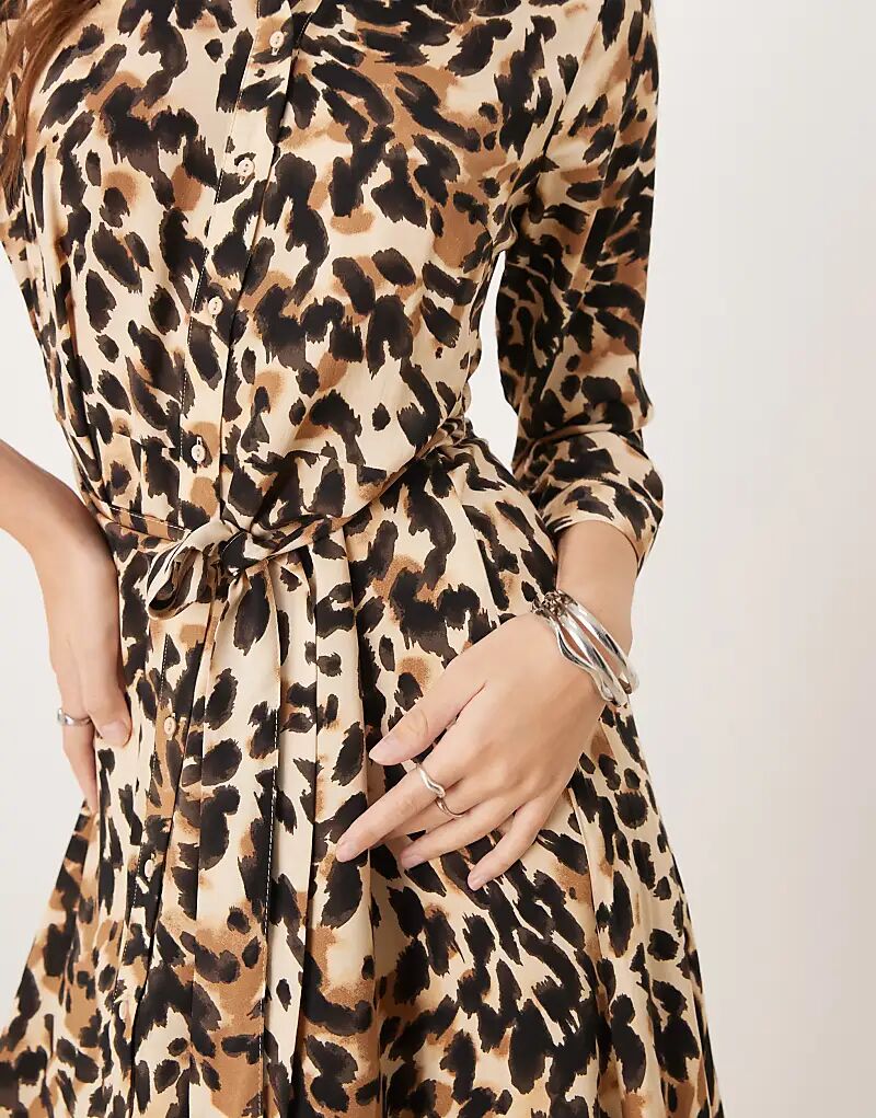 Платье-рубашка мини YAS с леопардовым принтом - ЧЕРНОЕ