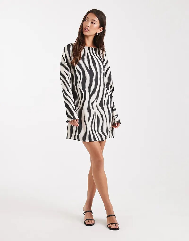 Атласное мини-платье New Look с принтом зебры черного цвета