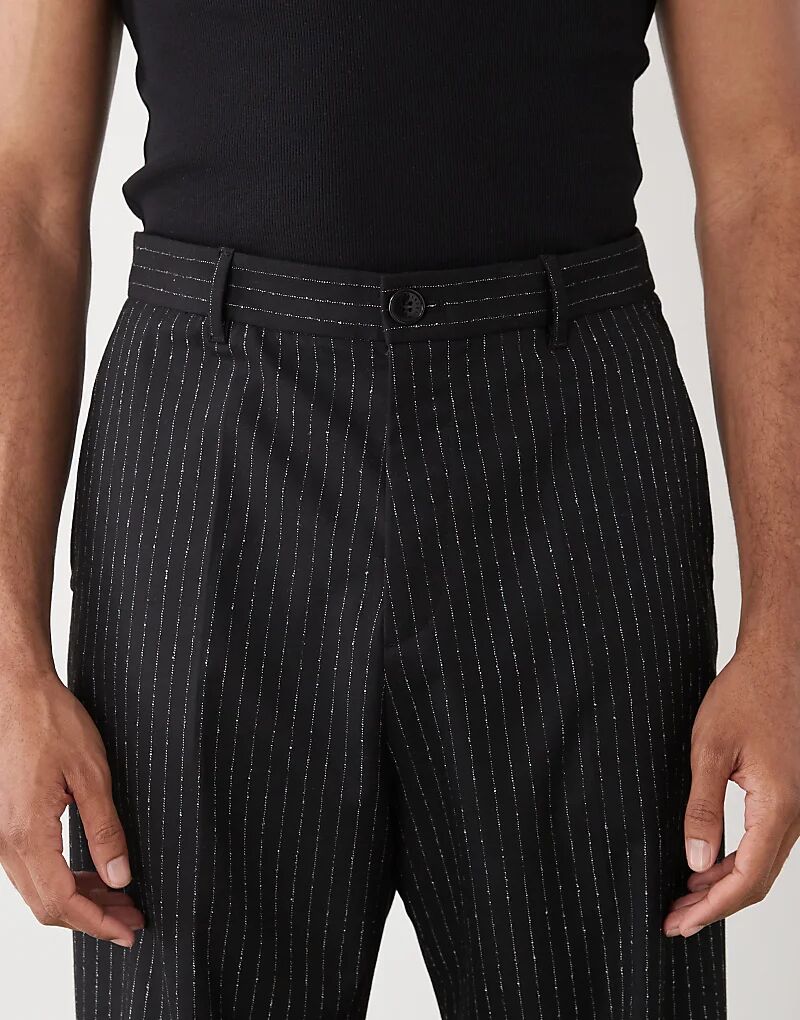 Свободные брюки в тонкую черную полоску Weekday 8 353₽