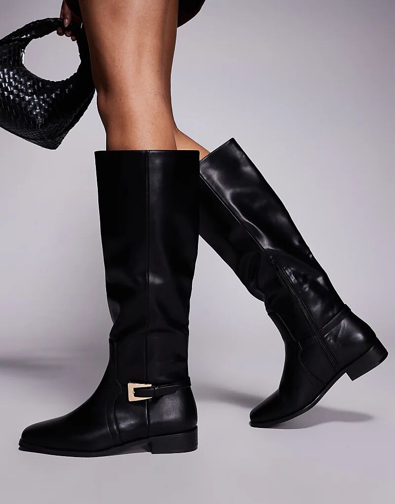 Сапоги Public Desire Wide Fit Mackie с пряжкой, черные