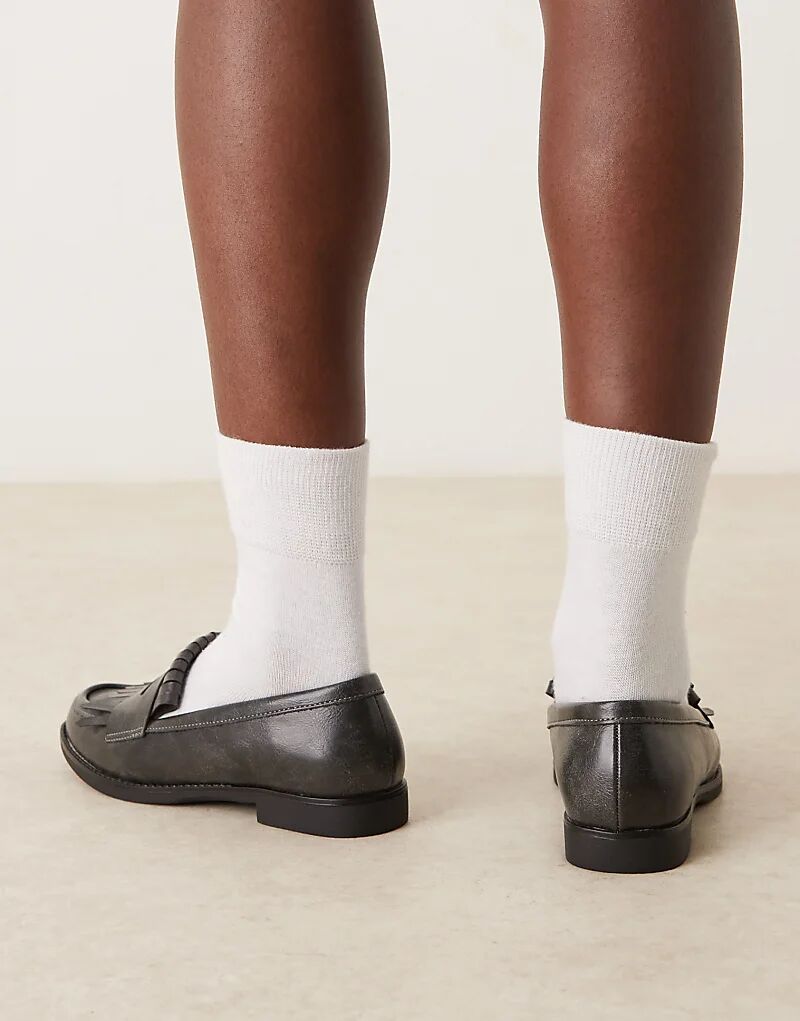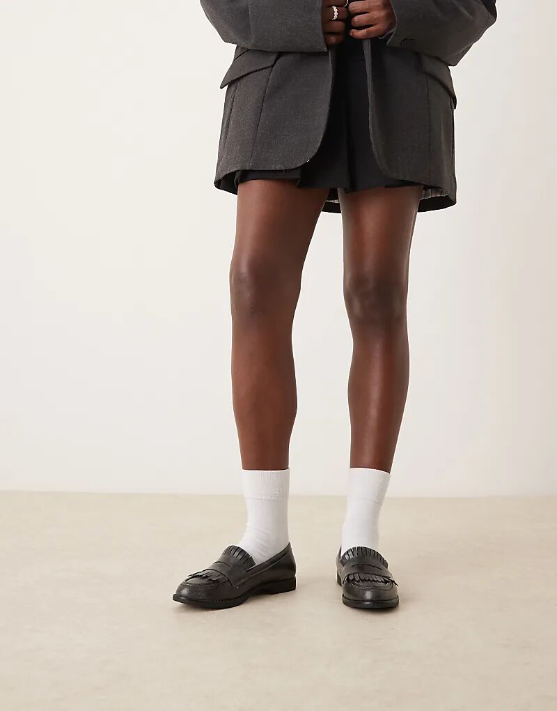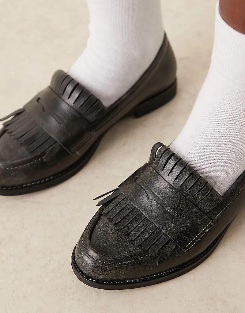 Гламурные черные мокасины с бахромой