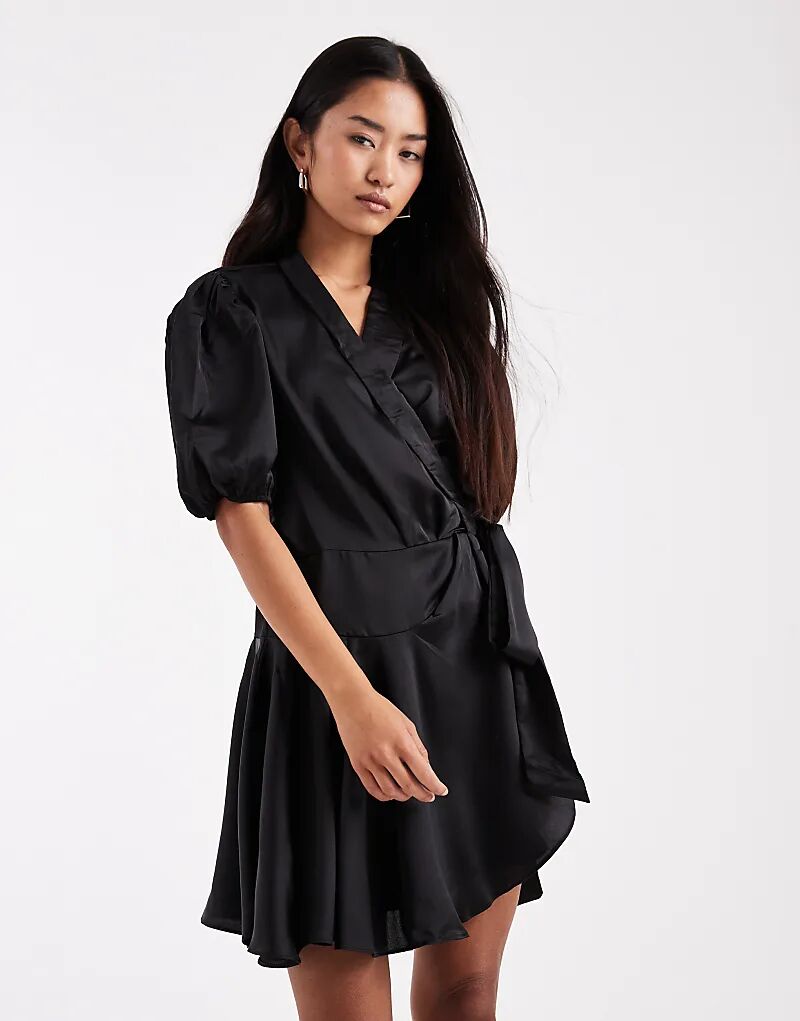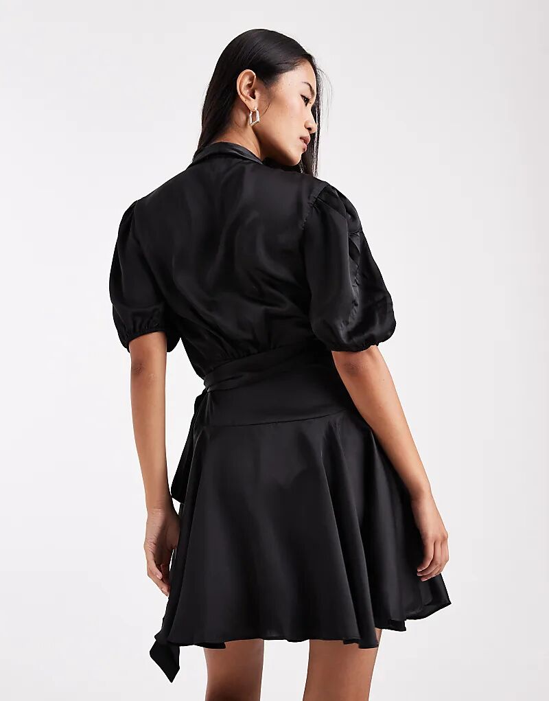 Платье-мини с запахом Narrated из черного атласа 8 214₽