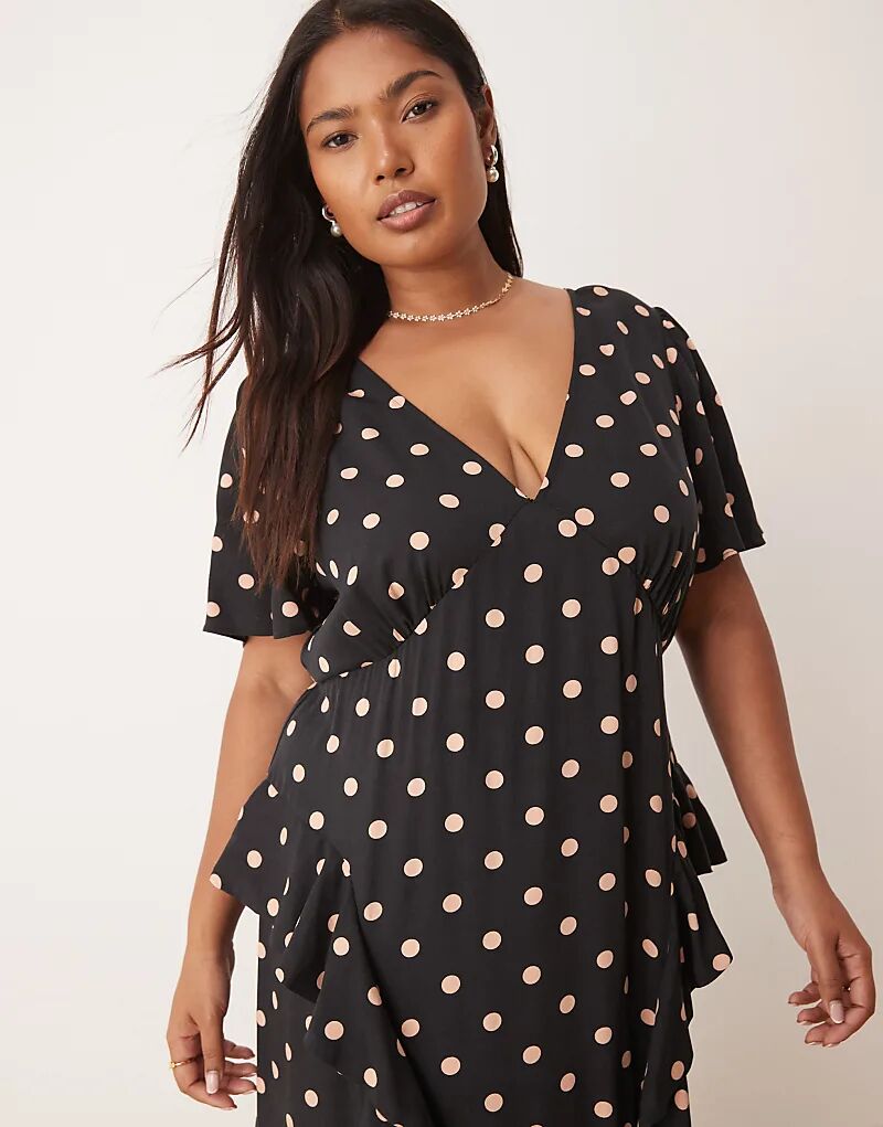 Платье миди Nobody's Child Plus Lyndsey с оборками в черный горошек 9 714₽