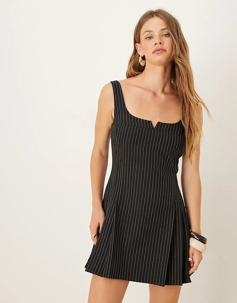 Мини-платье ASOS DESIGN в тонкую черную полоску с плиссированным подолом