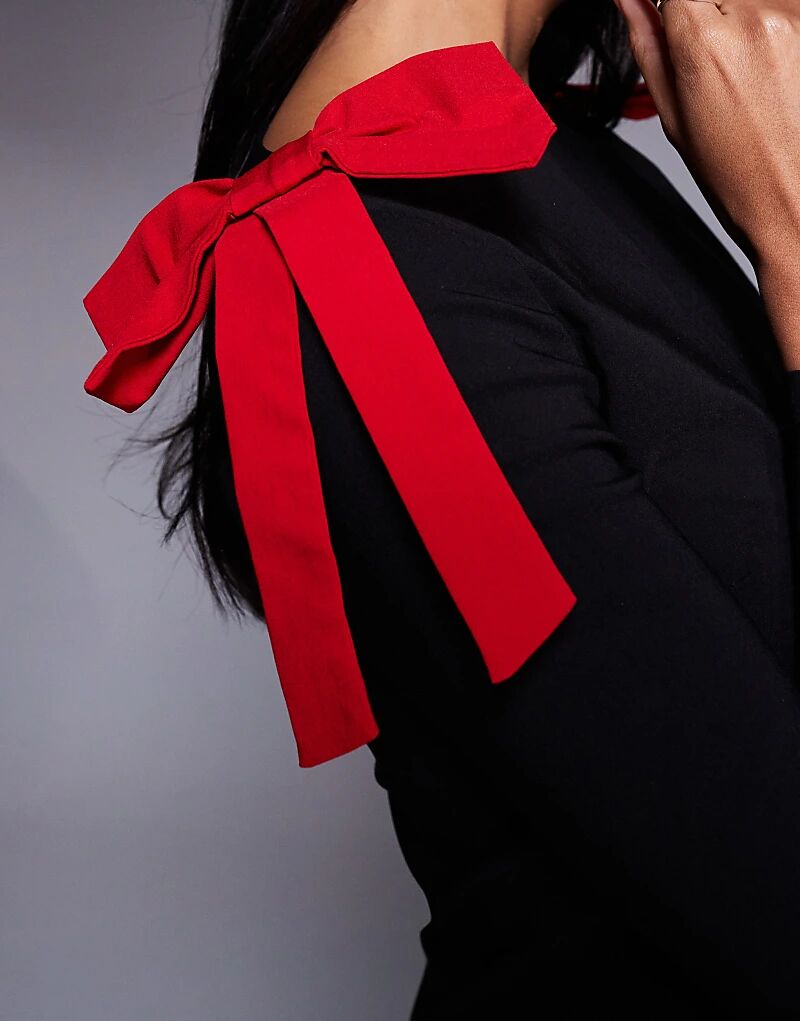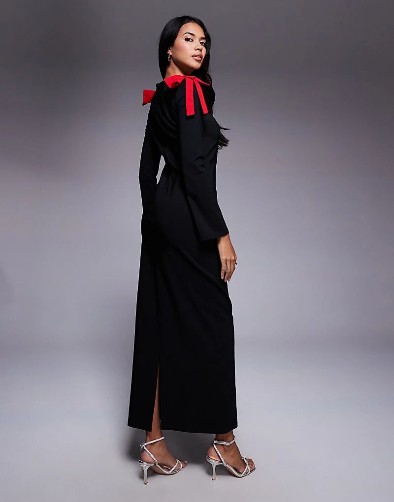 Платье макси с бантом на плече Daska черного и красного цвета 14 361₽