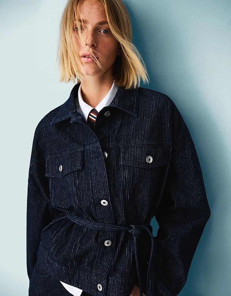 Джинсовая куртка Bershka Textured синего цвета