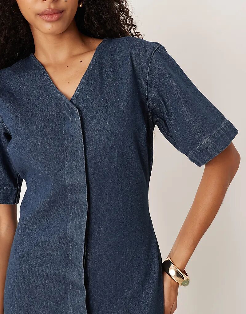 Джинсовое мини-платье ASOS DESIGN с высоким V-образным вырезом, средне-синего цвета